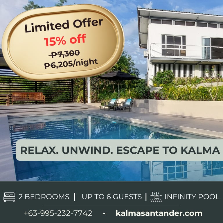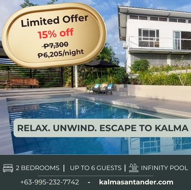 Nestled within a lush one-hectare garden in Santander, Cebu, Kalma is a private two-bedroom villa with its own infinity pool.